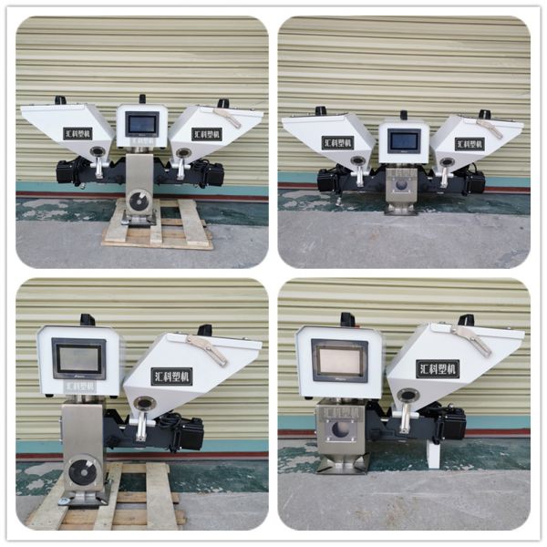 9. 可選擇由兩臺(tái)標(biāo)準(zhǔn)的混合器配備攪拌系統(tǒng)而組成的雙色混合器,可同時(shí) 輸送兩種不同的色母原料。