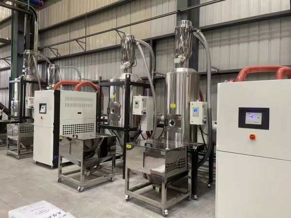 中央控制臺、旋風集塵器、高效能過濾器、風機、分支站、干燥料斗、除濕機、選料架、微動料斗、電眼料斗、截風閥、截料閥。